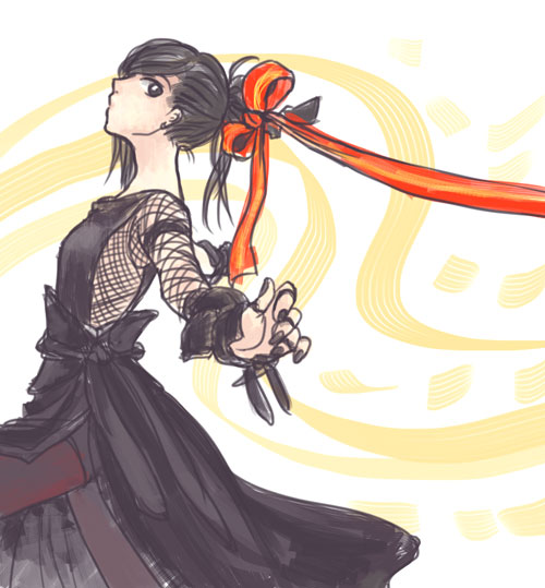 かんざしにリボン付けてるんですけどとても分かりづらい。画面に切れたリボンの先はいやはや誰のもとへ。