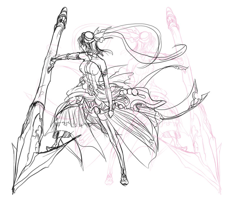 このキャラクターを考えてたときGGXにはまってて、ディズィーいいなぁ設定いいなぁとか言ってた時期なので彼女からインスパイアされたものがだいぶ入ってます。格ゲーならパラメータも彼女とほとんど同じ感じで。攻撃防御、スピード共に3強だけどガードブレイク起こしやすくてピヨりやすいとかまんま。